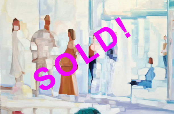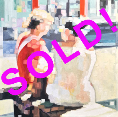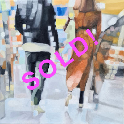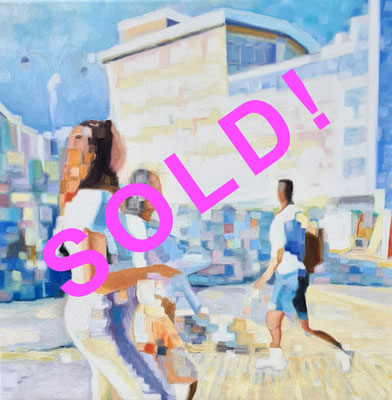 Die größeren in 20 x 20 cm sind zu Beginn, die kleineren in 15 x 15 cm kommen danach. Alle Minis sind in Ölfarbe auf mit Leinwand überzogenem Malerkarton gemalt und mit einer kleineren Leinwand hinterlebt zur schwenenden Hängung:
